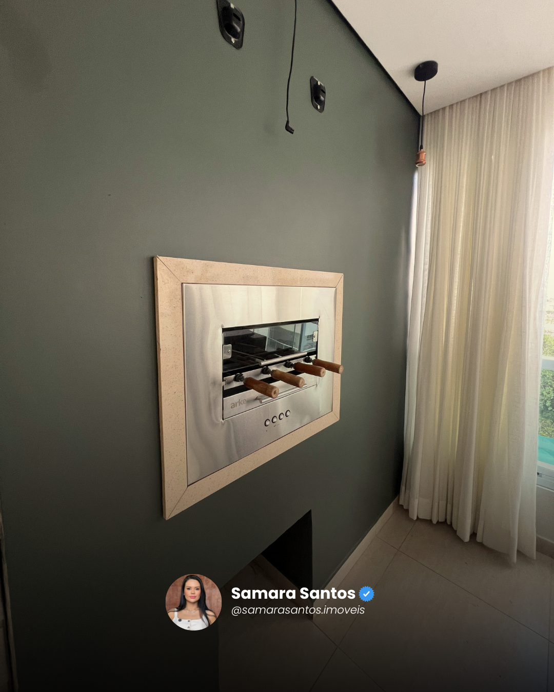 👉 Sacada ampla e integrada à área gourmet, equipada com churrasqueira elétrica, balcão de apoio em granito e vista privilegiada para o bosque.