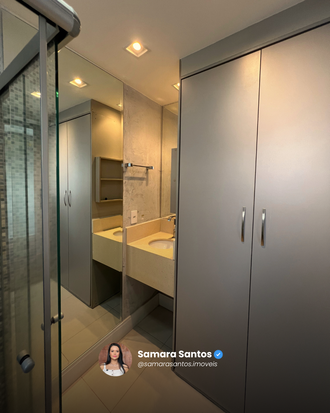 👉 Suíte master com closet e espelhos.